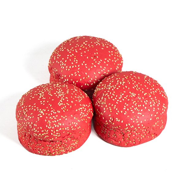 Pan hamburguesa hecho a base de harina, levadura, manteca y colorante vegetal.