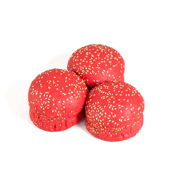 Pan hamburguesa hecha a base de harina, levadura, manteca y colorante vegetal.