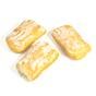 El pan ciabatta se caracteriza por su miga alveolada (llena de grandes agujeros) y esponjosa, resultado de una masa muy hidratada, una corteza crujiente y dorada, y una forma alargada y plana. Tiene un sabor delicado, a menudo con notas de aceite de oliva, y es ideal para sándwiches y acompañamientos gracias a su textura suave y su capacidad para absorber sabore.
